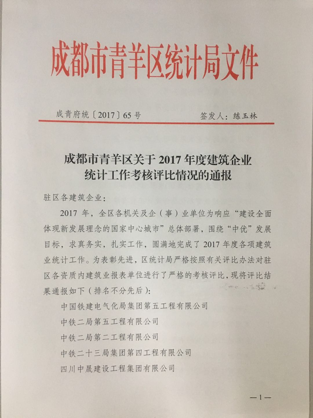 1月24日上午,青羊區(qū)統(tǒng)計(jì)局組織召開2017年建設(shè)領(lǐng)域統(tǒng)計(jì)工作年報(bào)會,對全區(qū)36家2017年度統(tǒng)計(jì)工作怎么怎么的完成較好的單位建筑企業(yè)進(jìn)行了通報(bào)表彰,集團(tuán)公司及集團(tuán)子公司華川集團(tuán)及華途公司均被評為先進(jìn)榮獲青羊區(qū)建筑業(yè)統(tǒng)計(jì)工作先進(jìn)單位。