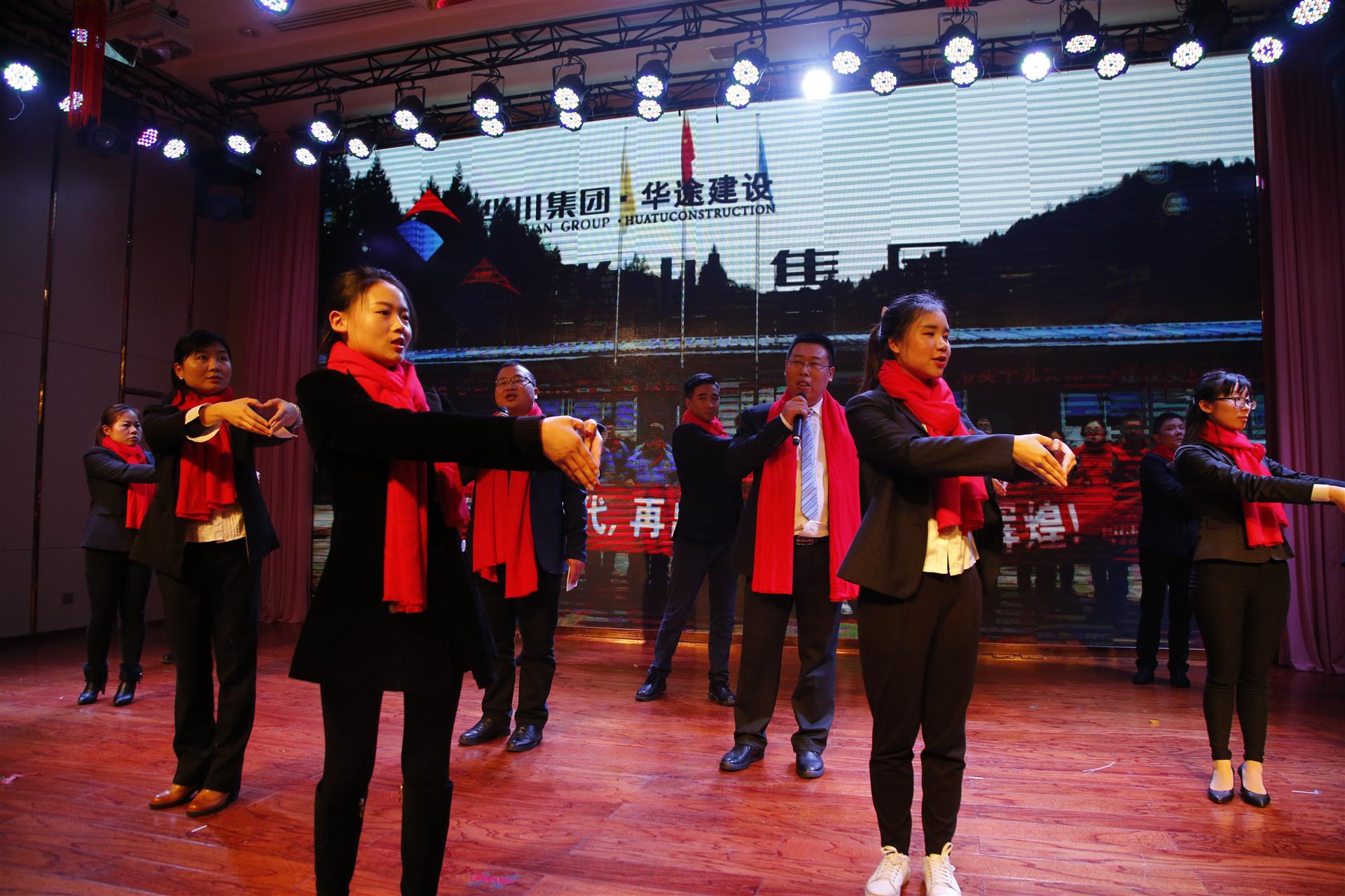 下午一時許,集團舉行了2018年新春團拜會。與會人員歡聚一堂,喜迎新春,共謀未來。團拜會在歌舞《好運來》中熱鬧開場。隨后舞蹈、合唱、歌伴舞悉數(shù)登場,節(jié)目新穎、編排創(chuàng)新,華北片區(qū)帶來的改編自《成都》的《工地》和改編版《為了誰》,唱出了華北片區(qū)修路鋪橋的艱辛,一句句歌詞展現(xiàn)著一幅幅畫面,一幅幅畫面都是華川兒女辛勤耕耘的成績。華途公司帶來的手語舞《相親相愛的一家人》、衡信公司帶來的歌伴舞《感恩的心》表達(dá)了華川兒女一家人,齊心上下共迎美好未來的憧憬。整場團拜會歡樂熱鬧,洋溢著喜慶歡快的節(jié)日氛圍。大家笑語不斷,不時舉杯共慶,共敘家人情誼、共話未來發(fā)展。
