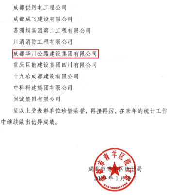由于上報時間及時、數(shù)據(jù)準確、流程規(guī)范,集團公司、華途公司、華霆公司在青羊區(qū)200余家建筑企業(yè)統(tǒng)計工作考核評比工作中脫穎而出,體現(xiàn)了集團公司及子公司已規(guī)范按照國家大數(shù)據(jù)統(tǒng)計工作要求開展、落實工作,具有先進性及代表性。