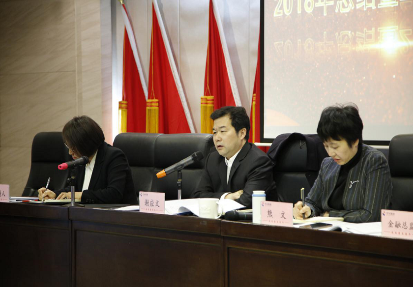 為全面總結(jié)2018年工作及梳理2019年重點(diǎn)工作,同時(shí)統(tǒng)一思想、鼓舞士氣,以高標(biāo)準(zhǔn)、嚴(yán)要求的姿態(tài)來(lái)走好集團(tuán)高質(zhì)量發(fā)展關(guān)鍵年,財(cái)務(wù)系統(tǒng)2018年總結(jié)暨2019年工作會(huì)于2019年3月15日下午在集團(tuán)總部1樓會(huì)議室召開(kāi)。集團(tuán)總裁、董事長(zhǎng)謝應(yīng)文、副總裁熊文、金融總監(jiān)劉浩波、財(cái)務(wù)管理中心主任曹平及全體職工參加會(huì)議;部分職能部門(mén)列席會(huì)議。