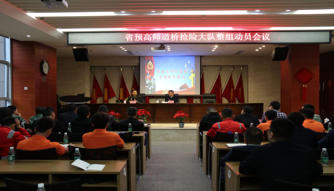 4月19日,省預(yù)高師道橋應(yīng)急搶險大隊整組動員會在集團一樓多功能會議室召開。本次會議由集團公司安委會副主任楊開榮主持,中國人民解放軍四川陸軍預(yù)備役高射炮兵師(下稱預(yù)高師)工兵營營長任英杰、師道橋應(yīng)急搶險大隊全體官兵參加會議。