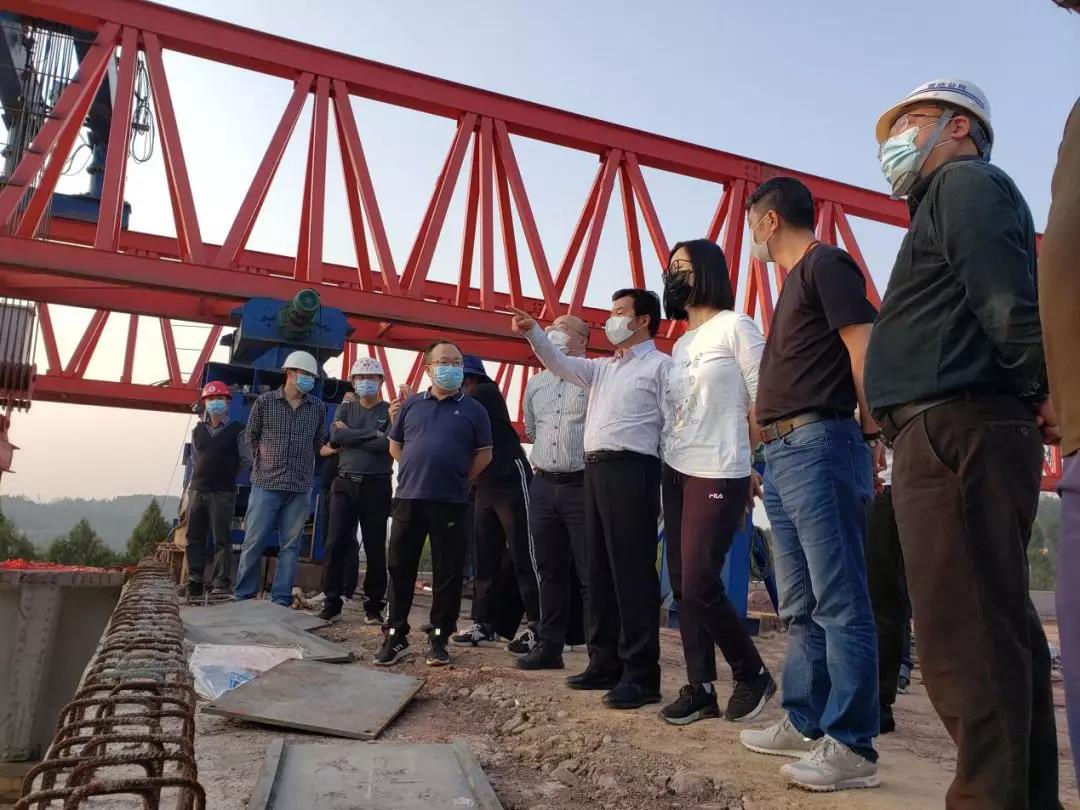 董事長一行深入石板樞紐互通、州河特大橋、巴河特大橋和路面施工現(xiàn)場,看進度質(zhì)量,詢問題矛盾,聽情況匯報,調(diào)研疫情防控、人員設(shè)備、施工組織、建設(shè)管理、材料供應(yīng)等情況。在視察過程中,董事長強調(diào):要按照既定時間節(jié)點,咬定運營目標(biāo),克服一切困難,強力有序高效推進收官之戰(zhàn)。