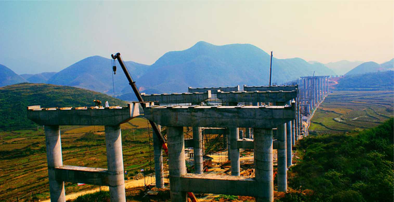 湖南省衡陽至桂陽高速公路項(xiàng)目第10合同段,交工時(shí)間為2012.11月,工期26個月,投資2.56個億。本工程全長4.8Km,設(shè)計(jì)標(biāo)準(zhǔn)為雙向六車道高速公路,設(shè)計(jì)行車速度為100km/h,路基寬度為33.5m。路基挖方102萬m³,路基填方104萬m³;有特大橋1146m/1座(橋?qū)?×16.5m),老屋場特大橋:38孔30米,全長1146米,橋?qū)?3米。